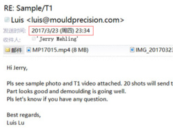“You are the very fast mold maker in China, I like it”, Jerry said when he is seeing mold trial in here.
