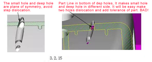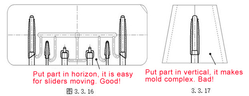 4. Determine the orientation of the adhesive in the mold so that the parting surface shall be prevented from producing side holes or side holes as much as possible, avoid make mold building in complex, as shown in figure 3.2.17.