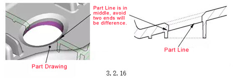 1. The location of Part Line should consider the surface finish require. It should be avoid in visible surface if possible, as shown in figure 3.2.14.
